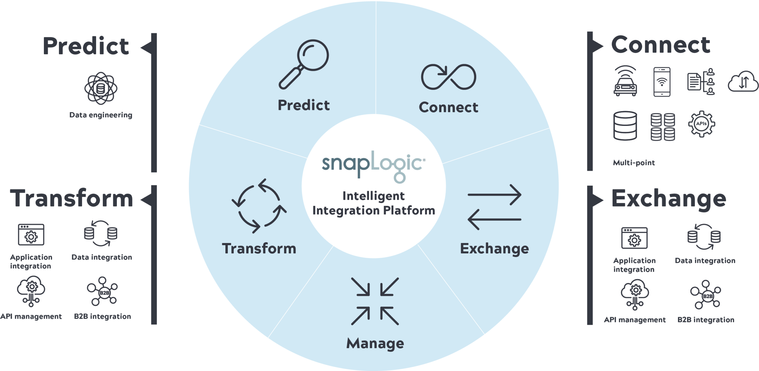 - SnapLogic API Management to build, consume, and manage up-to-date APIs all in one platform
