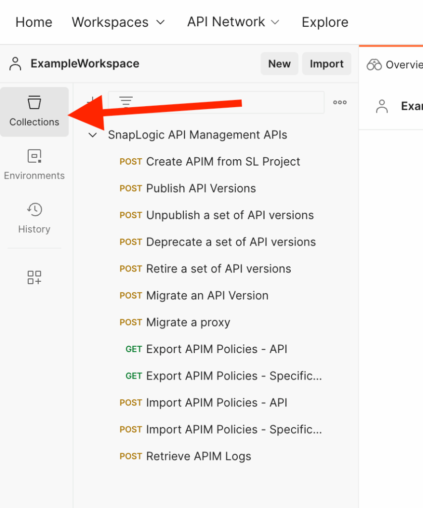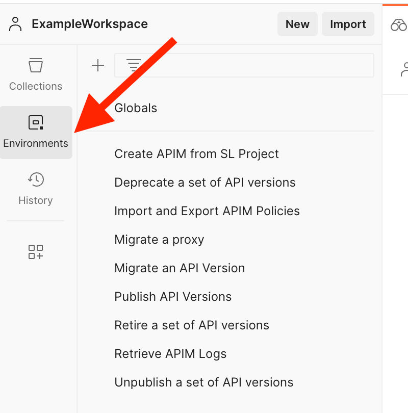 Once that’s completed, both the collection of APIs and the environments will be available from the left navigation bar.