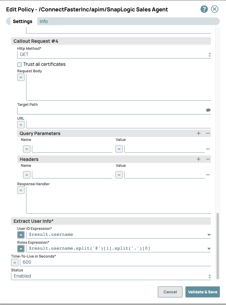 To prevent unauthorized access to your backend, you must secure the Triggered Task endpoint using SnapLogic API Management. SnapLogic enables policy-based security, allowing you to enforce authentication and authorization using Salesforce-issued tokens. Two primary policies will be applied: Callout Authenticator and Authorize By Role.