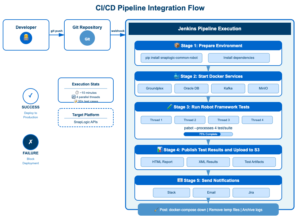 We hope this comprehensive guide helps you get started with automated testing for your SnapLogic integrations. The combination of snaplogic-common-robot and Docker-based infrastructure provides a powerful foundation for building reliable, scalable test automation.