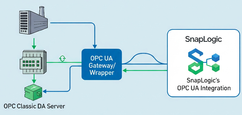 Si les serveurs OPC Classic (DA, AE, HDA) continuent de fonctionner de manière fiable dans les opérations industrielles, leur architecture liée à Windows et leur dépendance à DCOM les rendent incompatibles avec les plateformes d'intégration modernes cloud telles que SnapLogic. Pour combler cette lacune, plusieurs wrappers et passerelles OPC UA sont disponibles sur le marché, tels que :