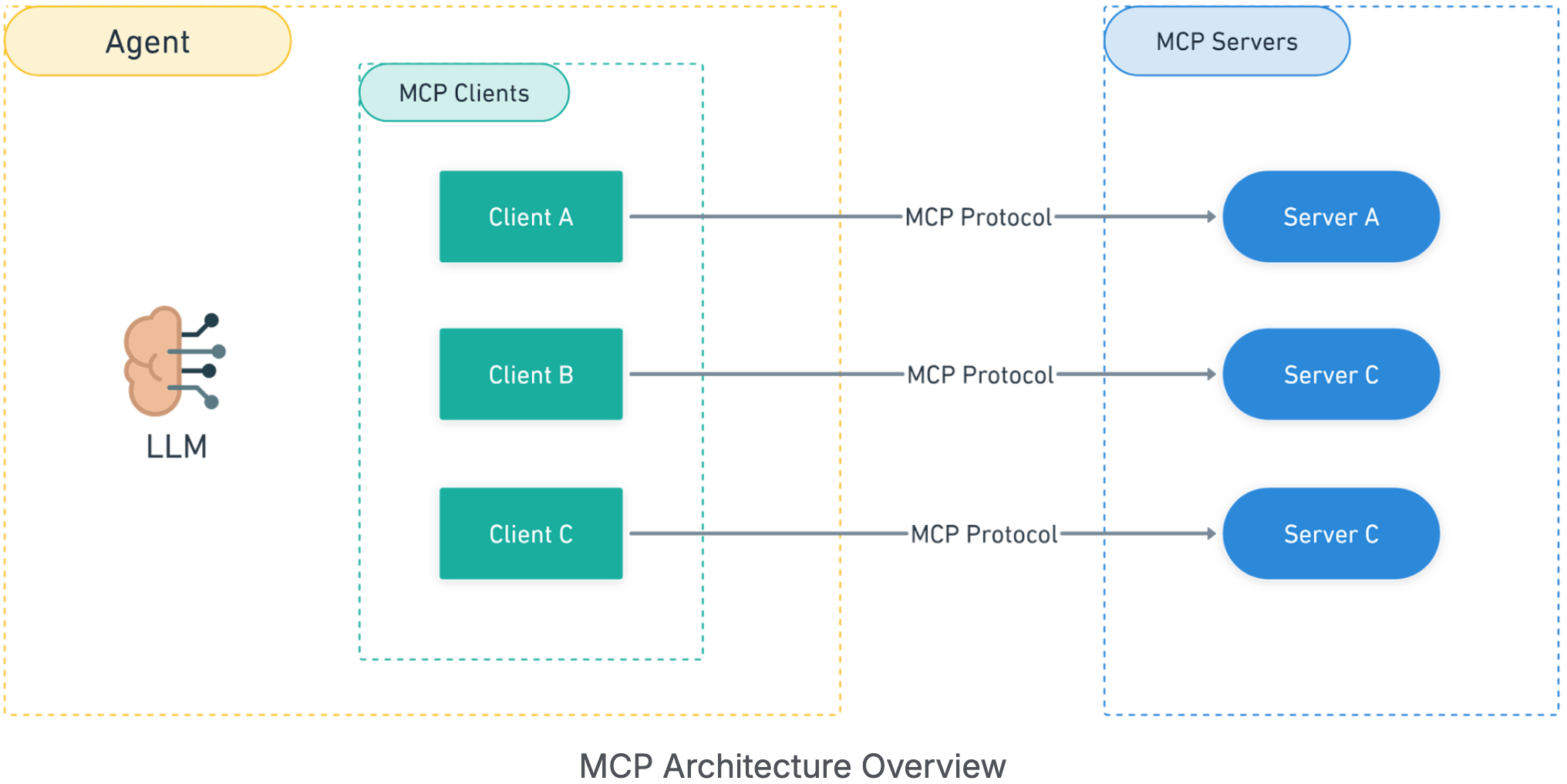 Le protocole MCP permet aux outils, aux ressources de données et aux invites d'être publiés par un serveur MCP d'une manière que les grands modèles de langage (LLM) peuvent comprendre. Cela permet aux LLM d'interagir de manière autonome avec ces ressources par l'intermédiaire d'un client MCP, élargissant ainsi leurs capacités à effectuer des actions, à récupérer des informations et à exécuter des les workflows complexes.