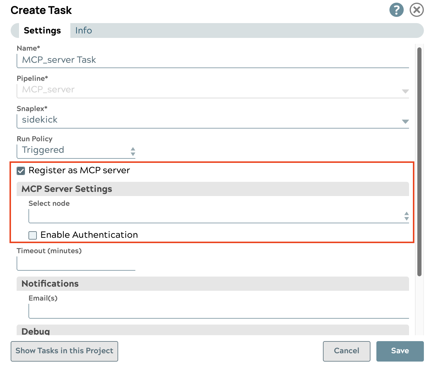 - Créer une tâche de déclenchement et s'enregistrer en tant que serveur MCP