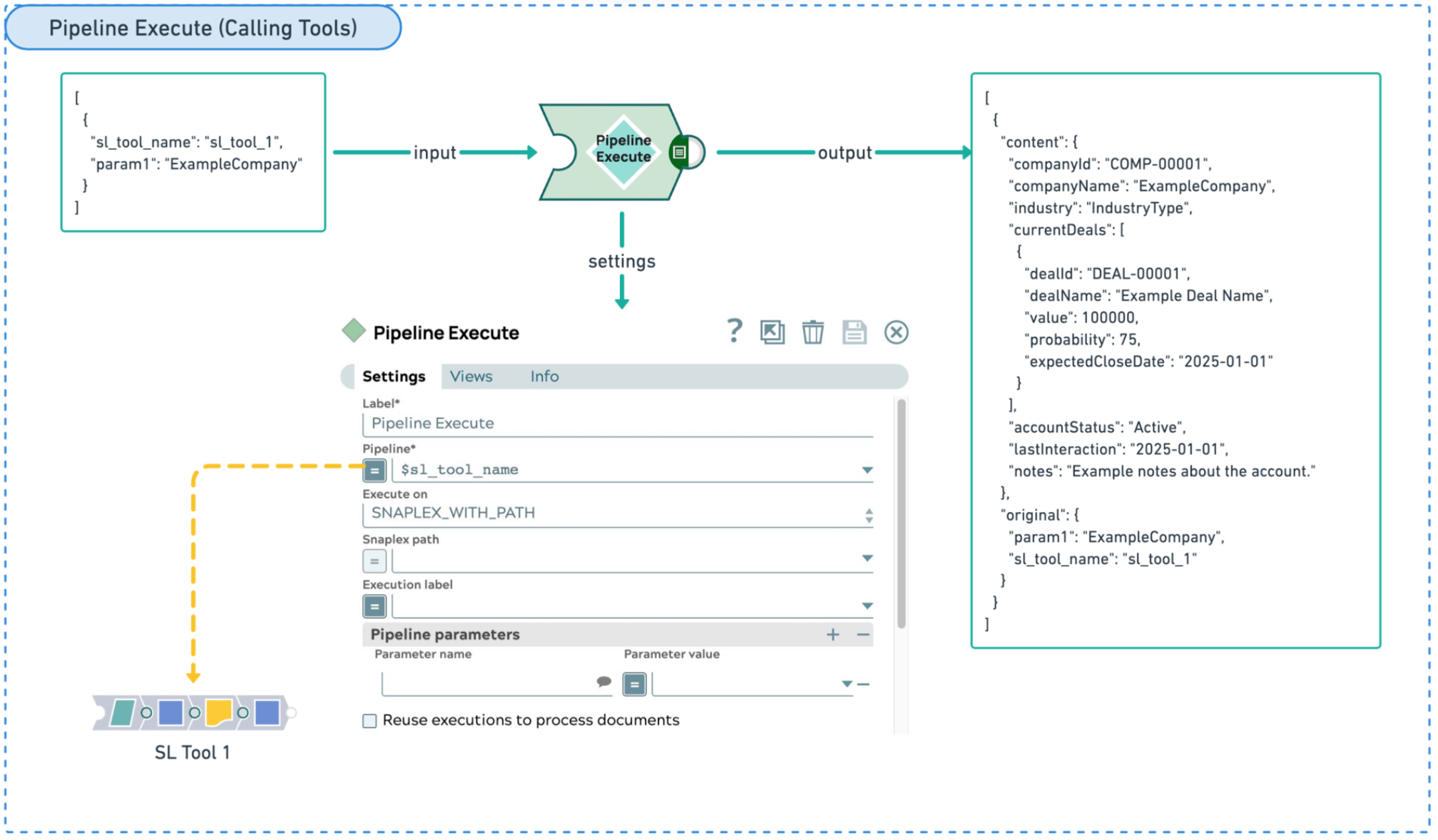- Ce qu'il fait : invoque dynamiquement le pipeline SnapLogic sélectionné et renvoie des résultats structurés.