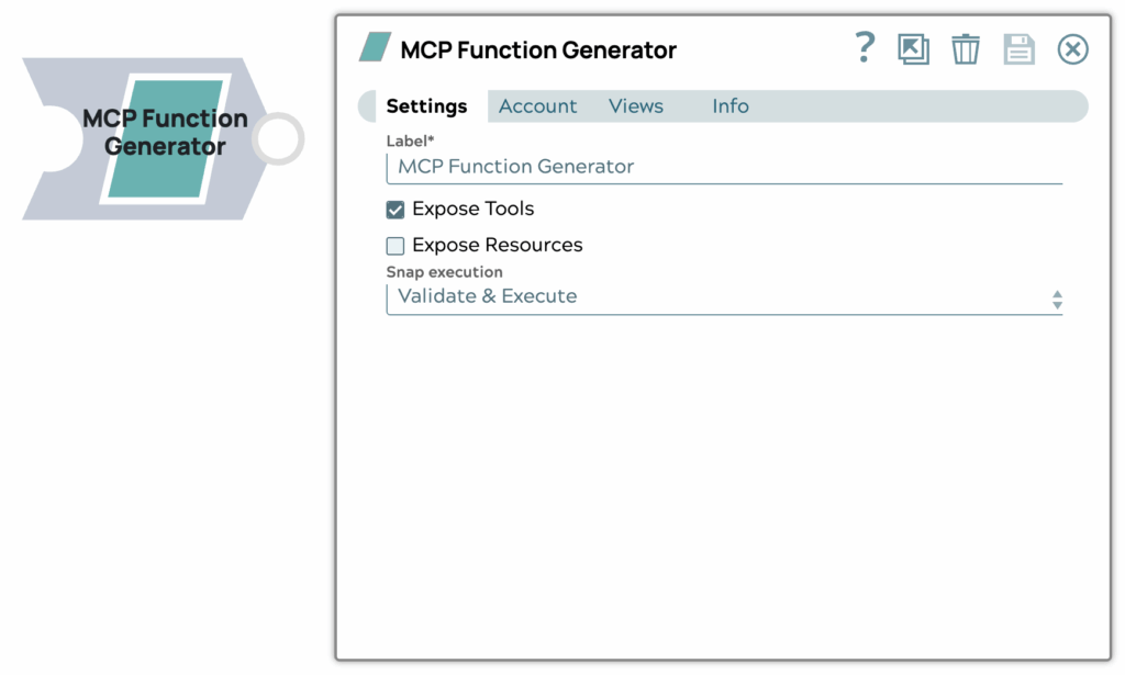 Le Snap MCP Function Generator permet aux utilisateurs de récupérer la liste des outils en tant que définitions de fonctions SnapLogic à utiliser dans un Snap d'appel d'outil.