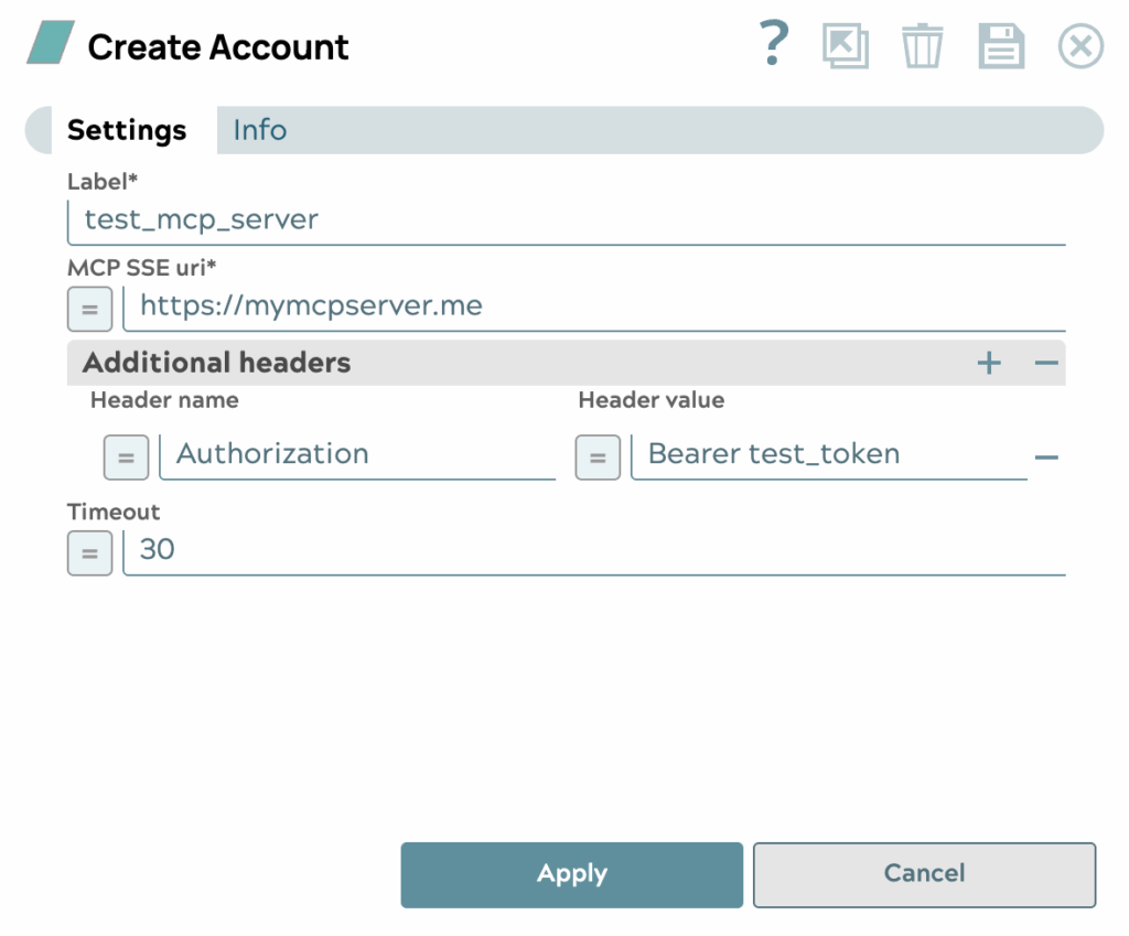- URL: L'URL du point de terminaison SSE de votre serveur MCP distant (notez le suffixe /sse ).