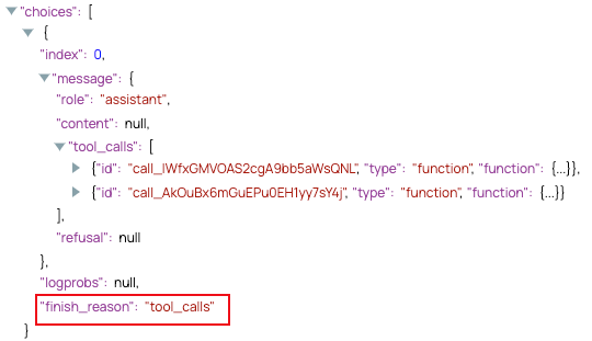 - Quando si desidera una cronologia dettagliata delle chat: Le pipeline non assistite forniscono una cronologia completa dell'interazione tra il modello e gli strumenti nell'elenco dei messaggi di output. L'elenco dei messaggi all'interno della pipeline non assistita conserva ogni risposta del modello e i risultati di ciascuna esecuzione della funzione. Questa registrazione dettagliata consente un debug, un'analisi e una verifica approfonditi del processo di chiamata dello strumento.