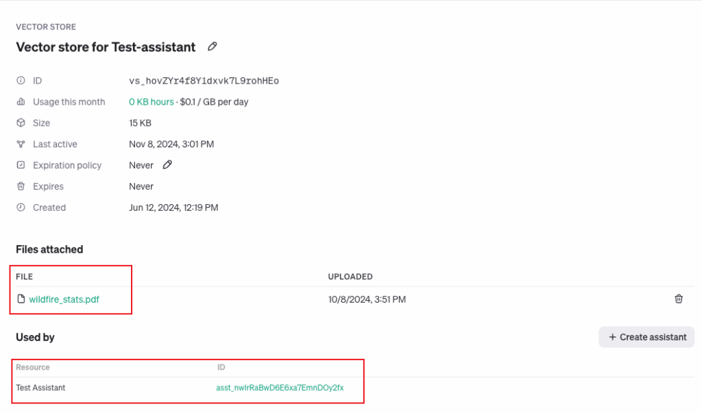 Il file è memorizzato in un archivio vettoriale utilizzato dall'assistente: