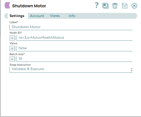 La pipeline avvia una sottoscrizione al nodo di telemetria del motore utilizzando lo Snap OPC UA Subscribe, che fa parte dello Snap Pack OPC UA di SnapLogic. Questo Snap stabilisce una connessione sicura e persistente al server OPC UA, indirizzandosi a un nodo motore specifico identificato dal suo NodeId.