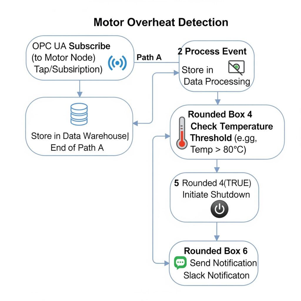 Una volta rilevato un surriscaldamento del motore (ad esempio, temperatura > 80 °C), la pipeline SnapLogic attiva un comando di spegnimento automatico per prevenire danni alle apparecchiature o incidenti pericolosi.