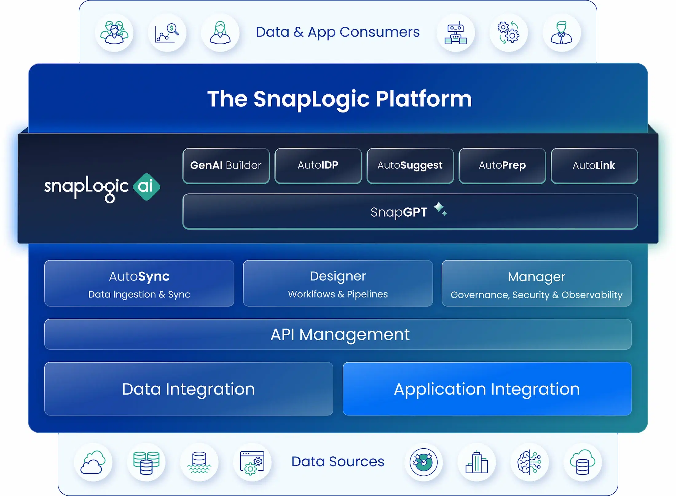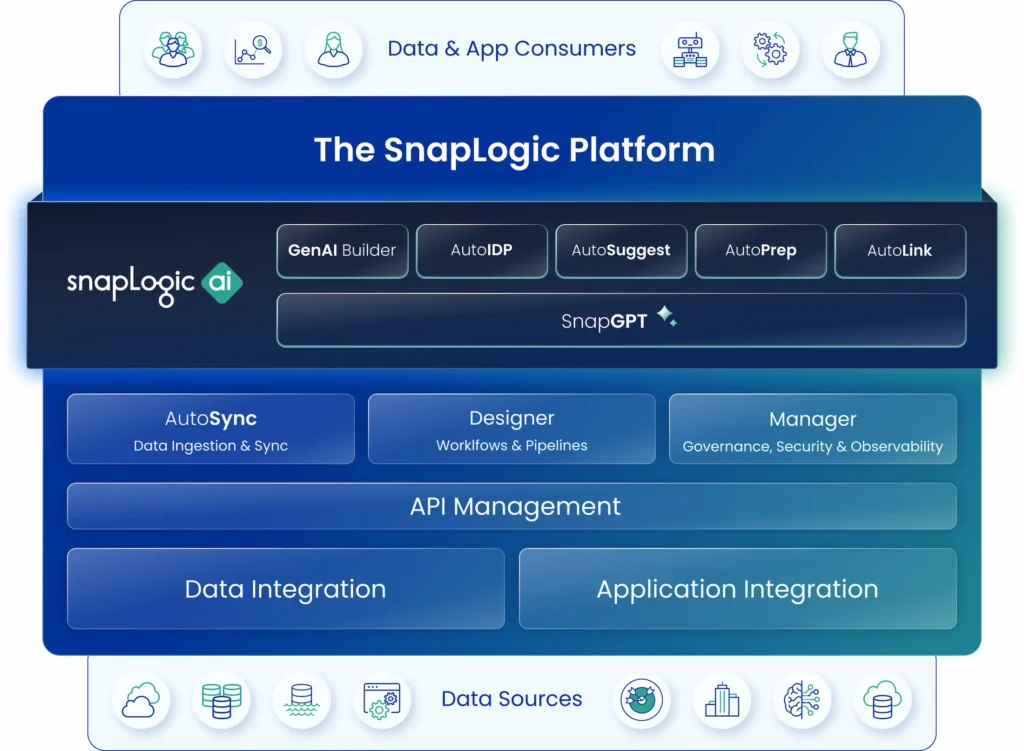 The SnapLogic iPaaS includes 700+ pre-built connectors, Snaps, and integration templates for common business processes and workflows.